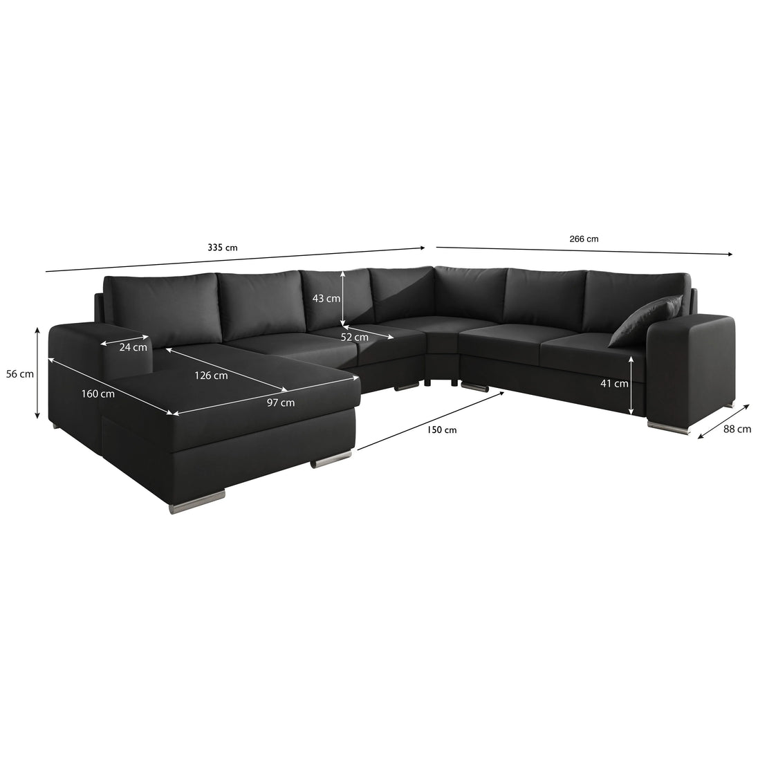 This corner sofa is a left-hand version. This means that when you face the sofa, the lounge area is on the left. Specifications