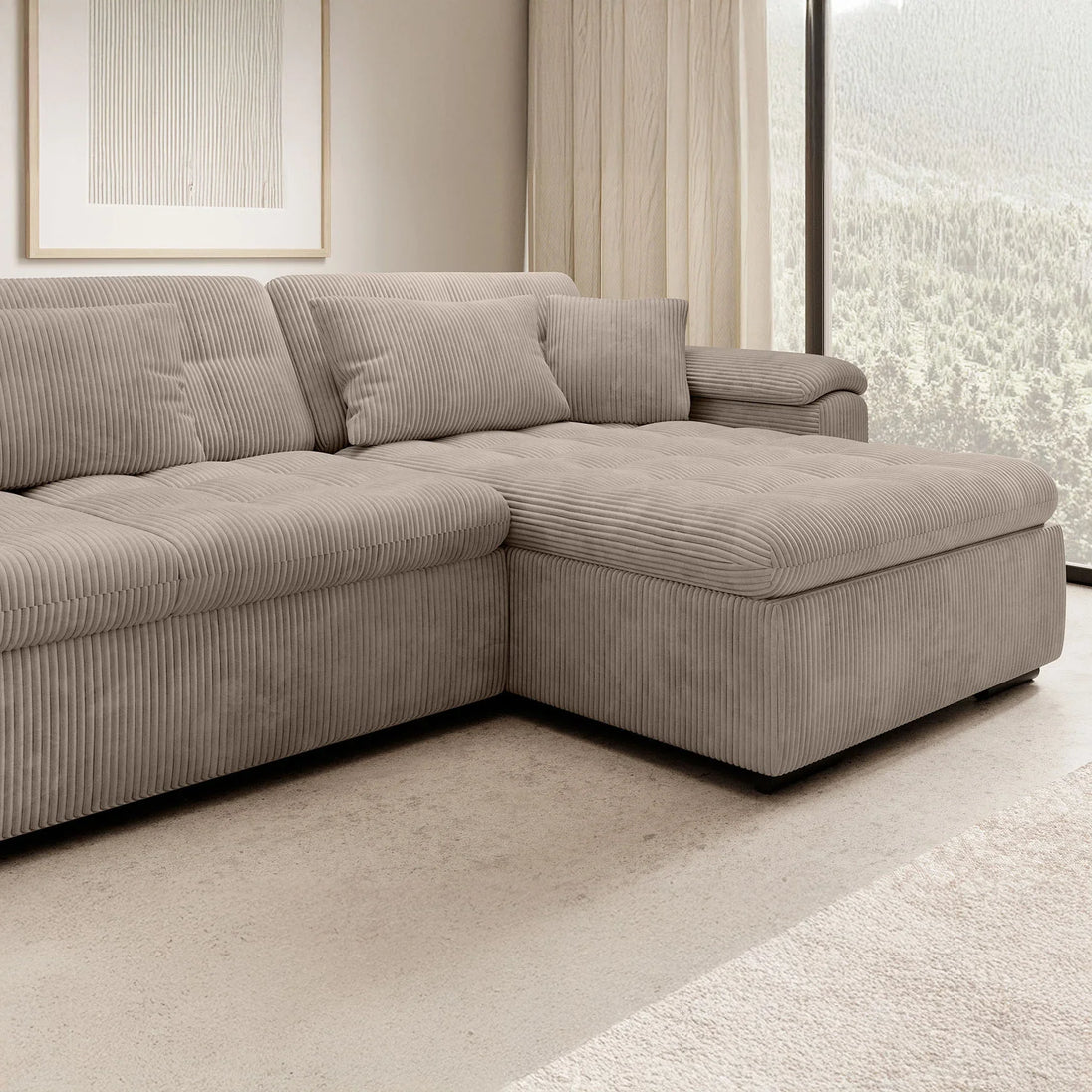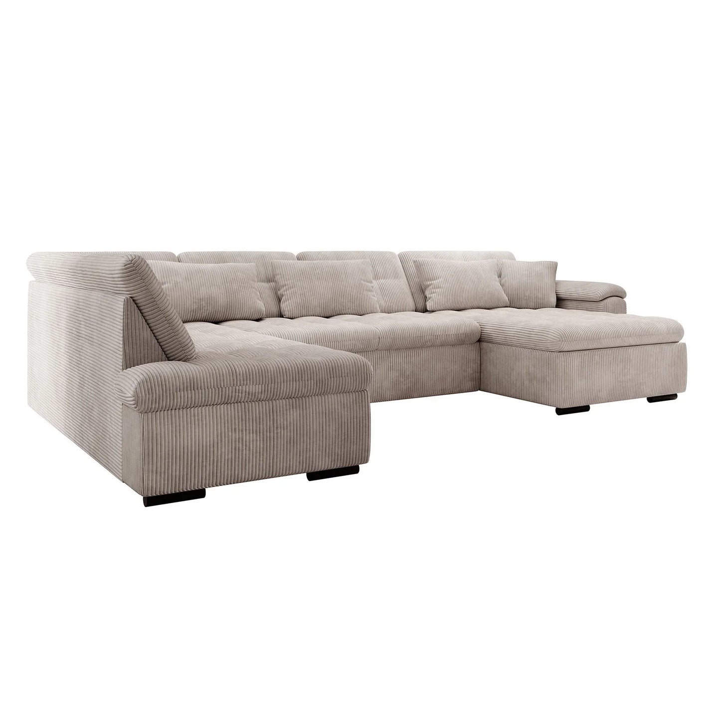 With the Nicoreta corner sofa, you bring a spacious and modern seating area into your home. The sturdy ribbed upholstery creates a luxurious look and feels soft to the touch. The spacious U-shaped configuration offers space for 5 to 6 people.