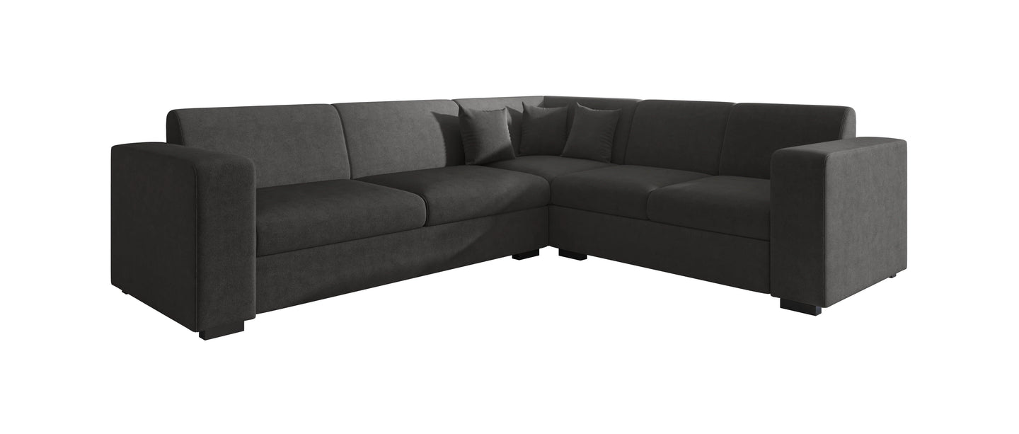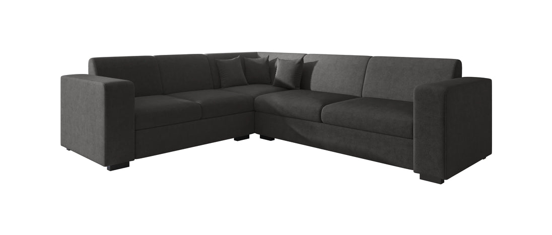 The Santana corner sofa is a stylish and comfortable sofa that fits effortlessly into any interior. This spacious corner sofa seats four and is upholstered in a luxurious velvet fabric in deep black, creating an elegant look with a soft touch.