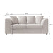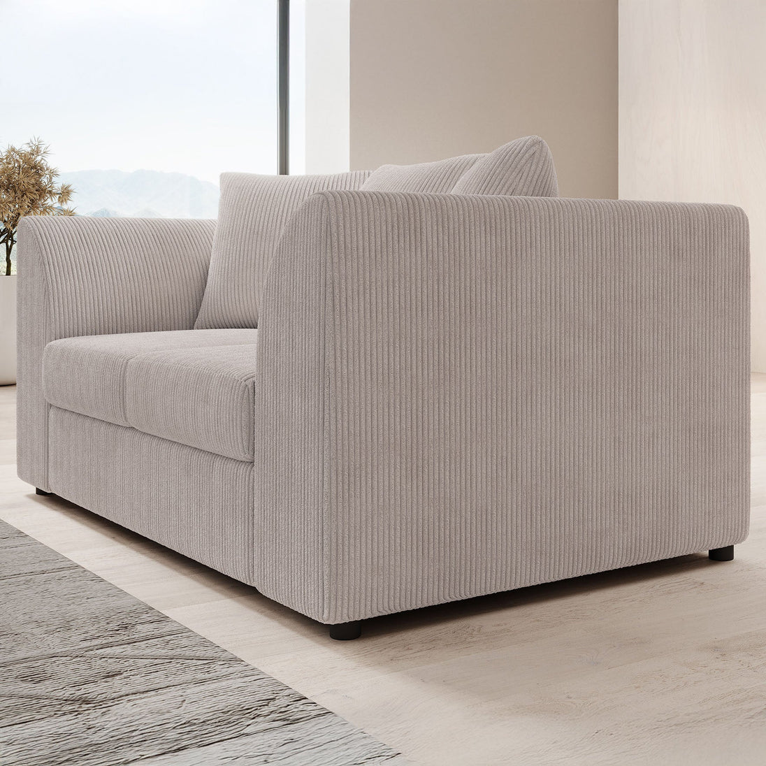 The sofa is upholstered in a high-quality ribbed fabric (90% polyester, 10% nylon) that feels soft to the touch. The vertical ribbing adds a playful yet chic touch that fits perfectly in a contemporary or hotel-style interior.
