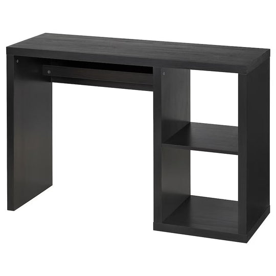 A large desk with plenty of room for a computer, papers, and other items you need to keep handy or stored on shelves. There's even room for a second chair.