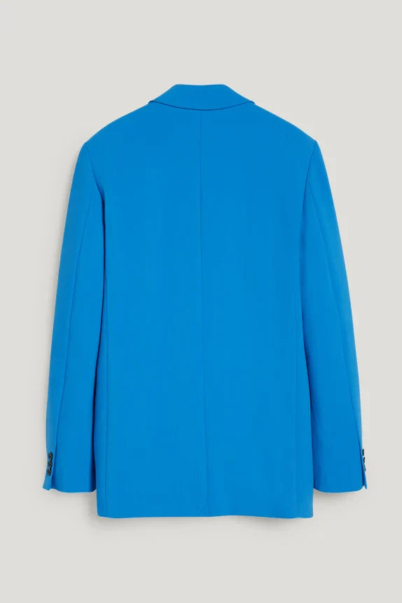 Oversized blazer in a soft, woven fabric with shoulder pads, two flap pockets, and a smooth fabric lining.