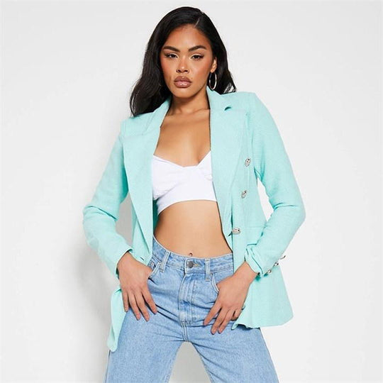 blazer in a textured finish with a double breasted fastening, a collar neckline and gold buttons. Fit TypeRegular Fit WeatherproofNot Waterproof FabricPolyester LengthCalf Length FillingSynthetic Hood TypeWithout Hood Collar StyleZip Collar Sleeve LengthLong Sleeve Pockets2 Pockets...Reguliere prijs €35,00Reguliere prijs €35,00