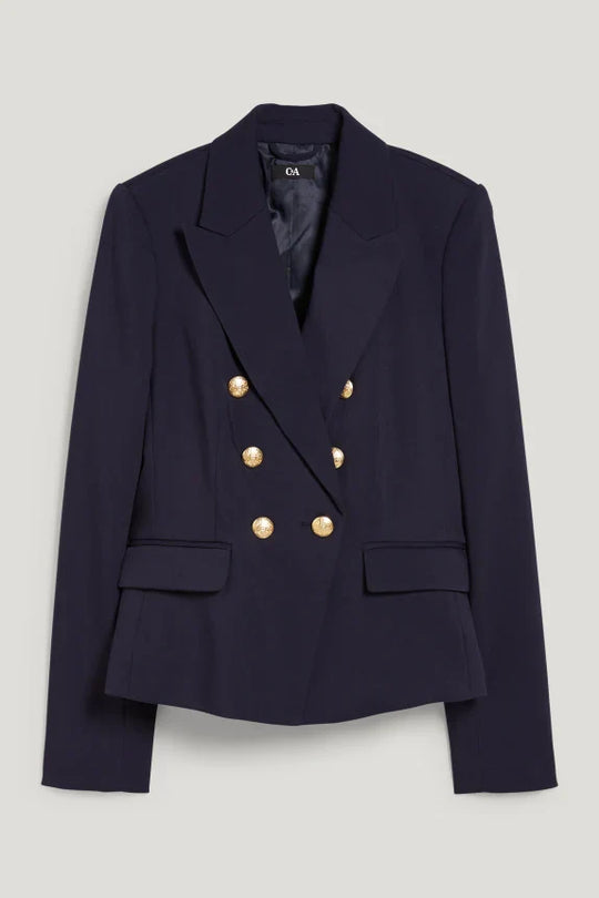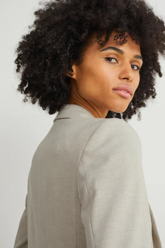 Business blazer in a soft, stretchy fabric with shoulder pads and a double-breasted closure. Features two buttoned pockets, a rounded hem, and a smooth fabric lining. Collar: Lapel Sleeve length: Long sleeves Closure: Button closure Design:...Verkoopprijs €90,00Reguliere prijs €109,00Verkoopprijs €90,00Reguliere prijs €109,00 -