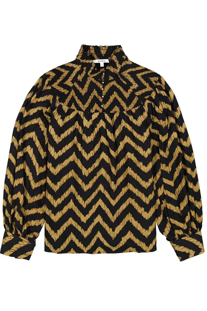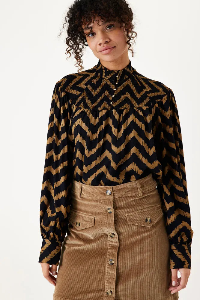 Blouse met grafische allover print. De blouse heeft een opstaande kraag met knoopsluiting en een relaxed fit. Dit item is gemaakt van 100% viscose.