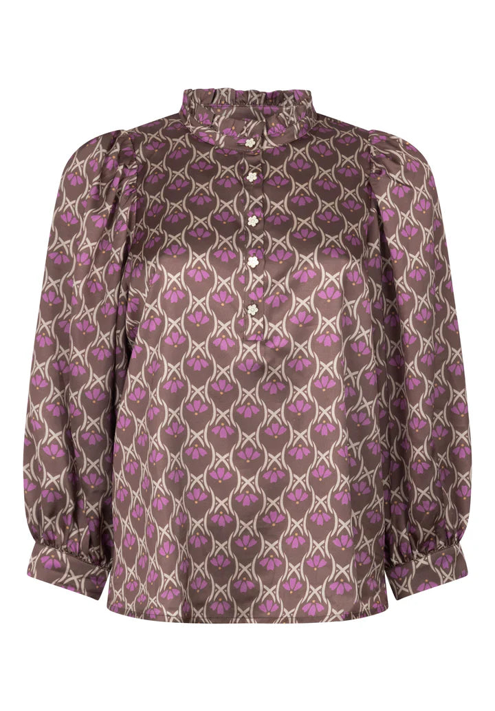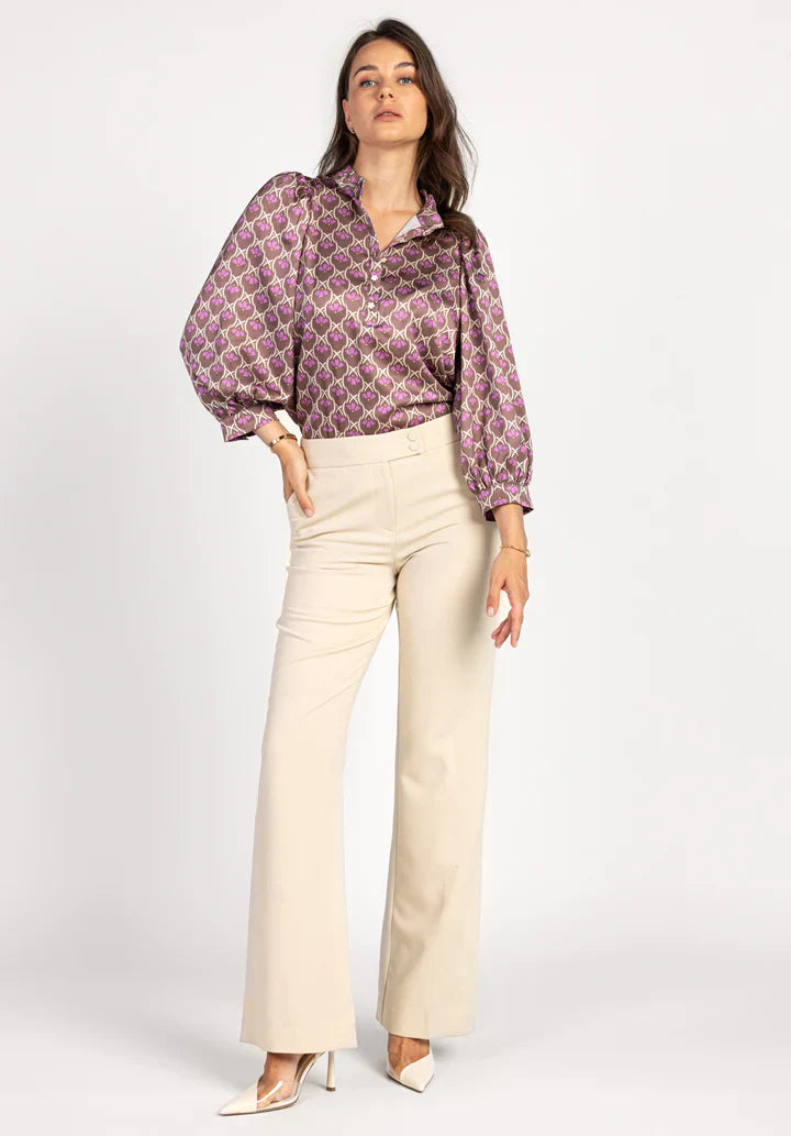 Ladies Blouse Purple Beige Brown XS S M L XL XXL