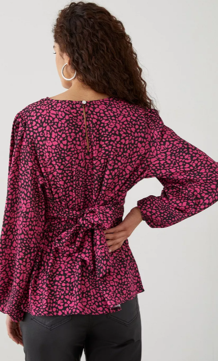 Dames blouse lichtroze zwart s m l