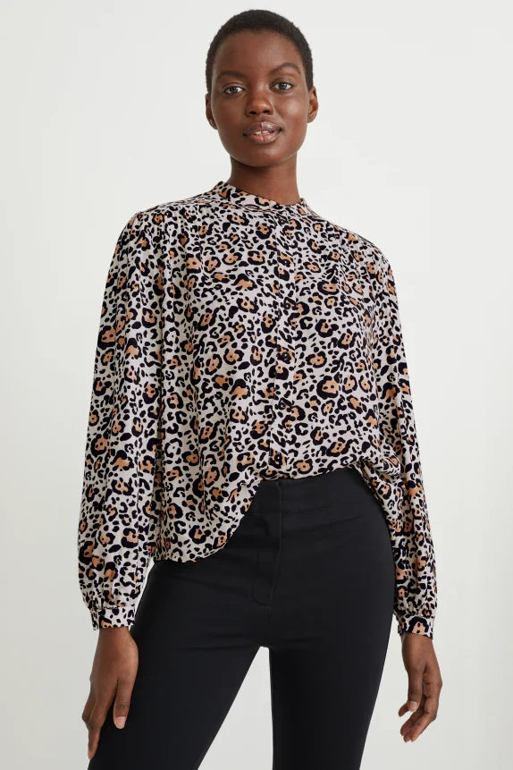 Clemens & August merk dames blouse overhemd luipaardprint lichtbeige xs s m l xl xxl