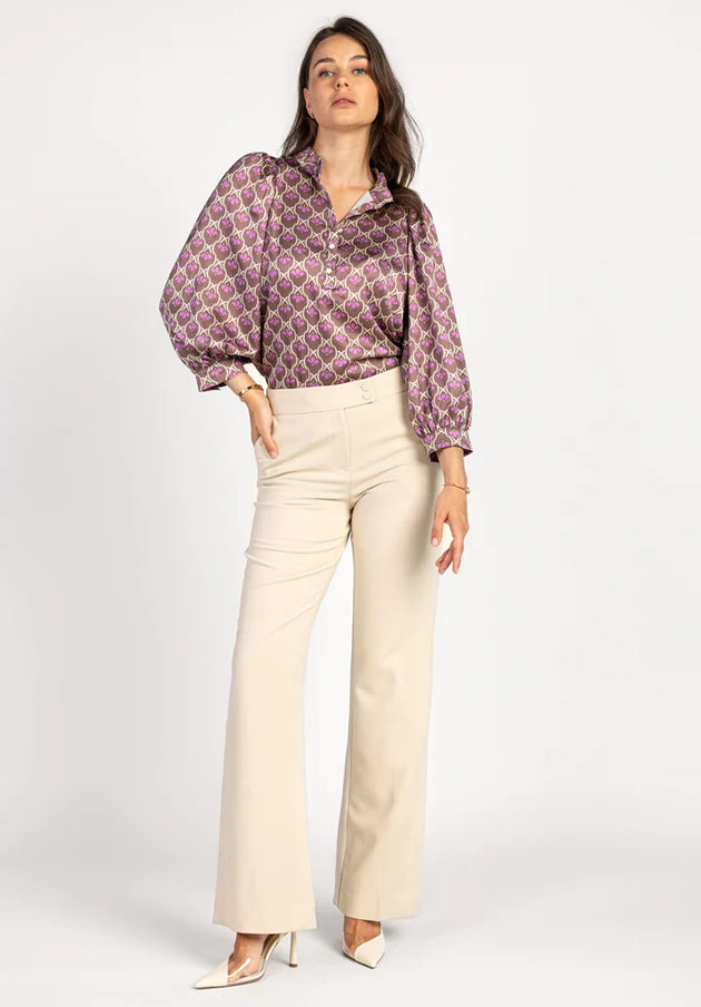 Dames blouse paars beige bruin xs s m l xl xxl