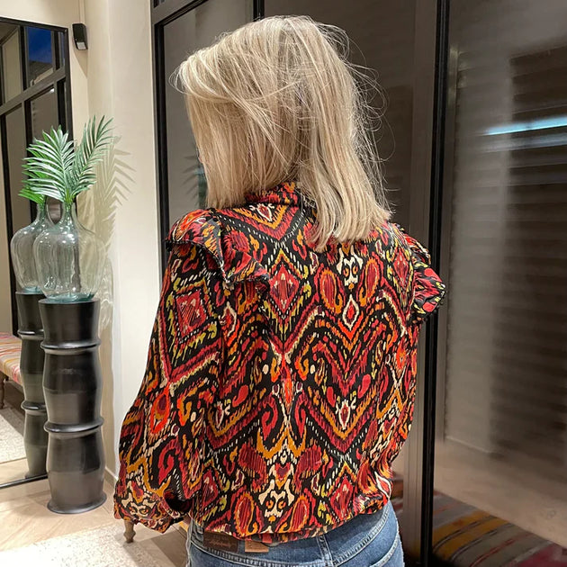 UNICORN Women's Blouse Top print red light brown s m l xl
