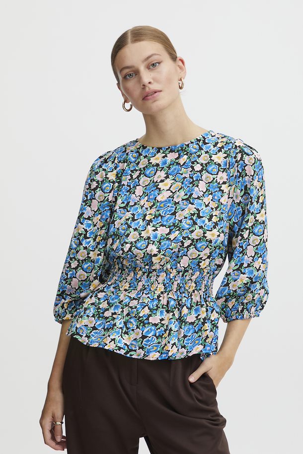 Dames blouse blauw bloemetjes xs s m l xl