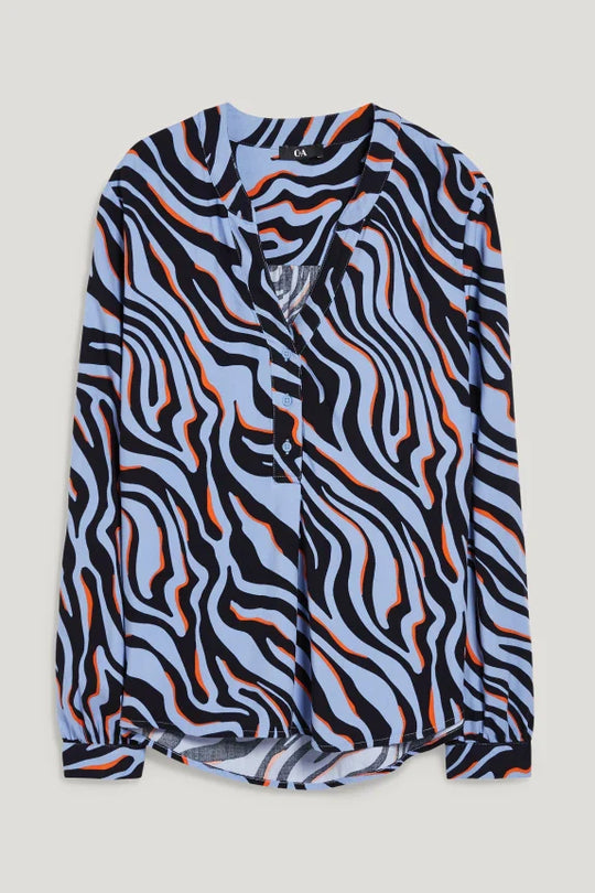 Clemens & August merk dames blouse overhemd zebra zwart blauw wit xs s m l xl xxl