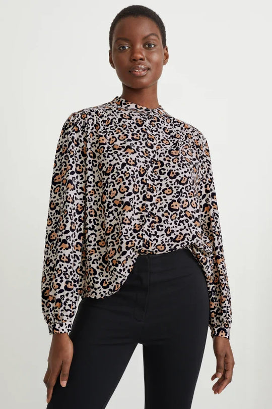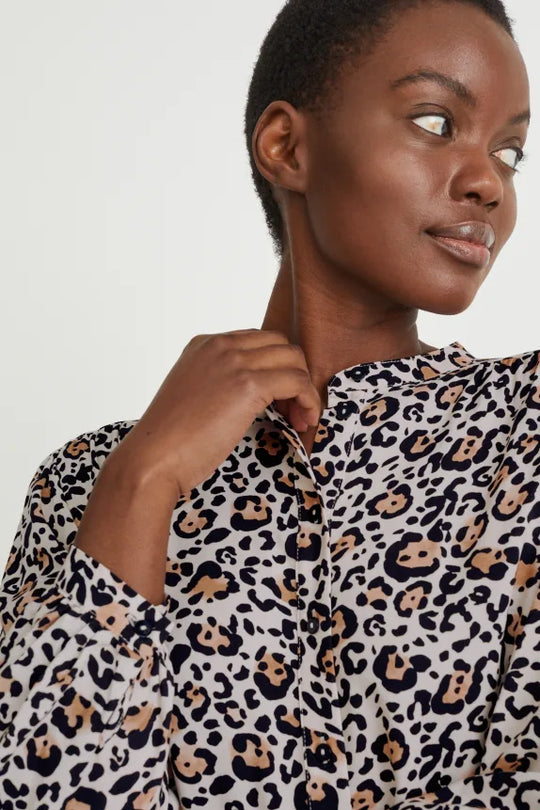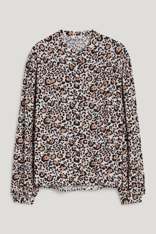 Clemens & August brand ladies blouse shirt leopard print light beige xs s m l xl xxl Blousen van een lichte, soepelvallende, geweven stof met luipaardprint en smalle 1-knoopsmanchetten. Vorm van de kraag:korte opstaande kraag Mouwlengte:met...Reguliere prijs €47,50Reguliere prijs €47,50 -