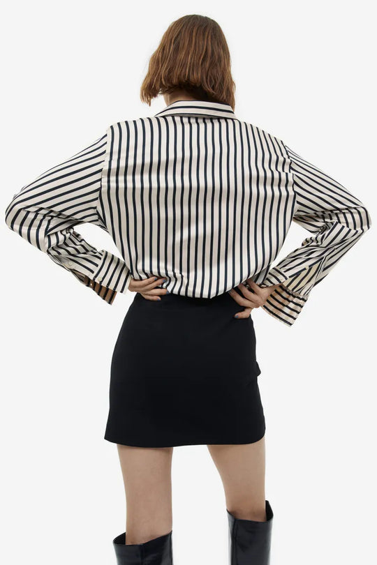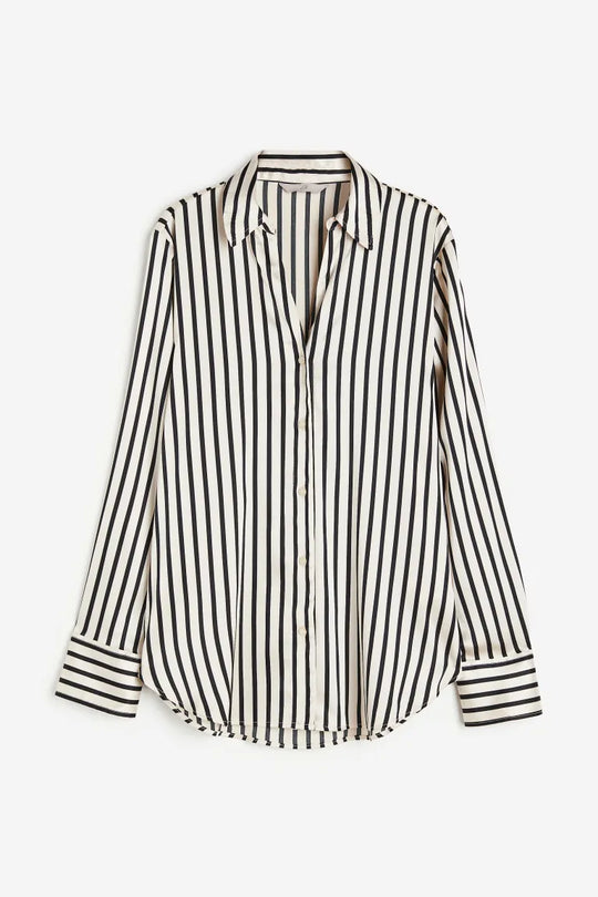 Blouse Shirt Black Cream White Light Pink Light Blue Light Green Kakigroen Striped XS S M L XL XXL Een blouse van glanzende, geweven kwaliteit met een kraag, een V-hals, een knoopsluiting voor en lange mouwen...Reguliere prijs €30,00Reguliere prijs €30,00 -