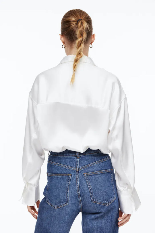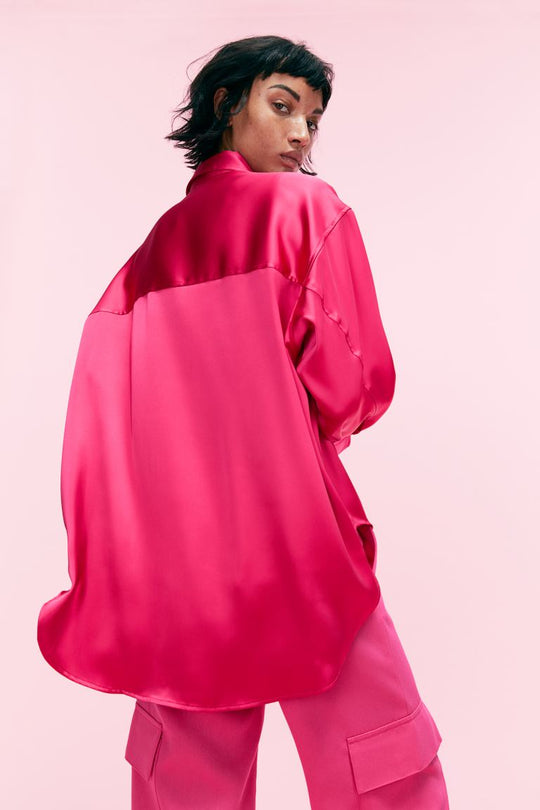 Blouse Shirt Black White Cerise Light Pink XXS XS S M L XL XXL Een oversized blouse van soepel satijn met een puntige kraag en een knoopsluiting voor. De blouse heeft verlaagde schoudernaden, licht naar voren...Reguliere prijs €30,00Reguliere prijs €30,00