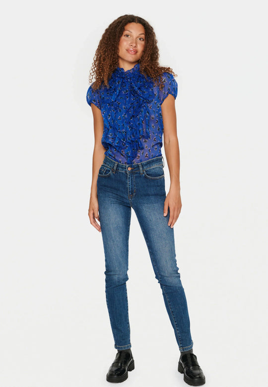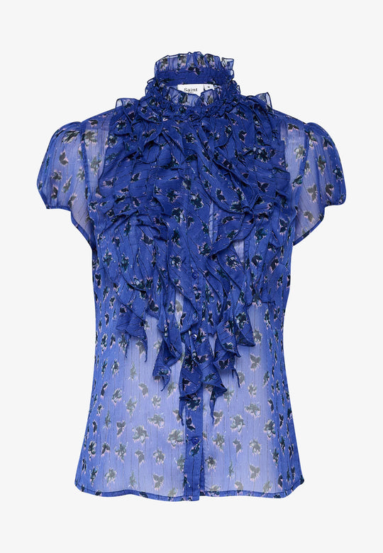 Ladies blouse blue green light blue pink xs s m l xl xxl Halslijn / kraag: Kraag met ruches Sluiting: Knopen Transparant: Licht Patroon: Print Details: Figuurnaden, biesReguliere prijs €99,00Reguliere prijs €99,00