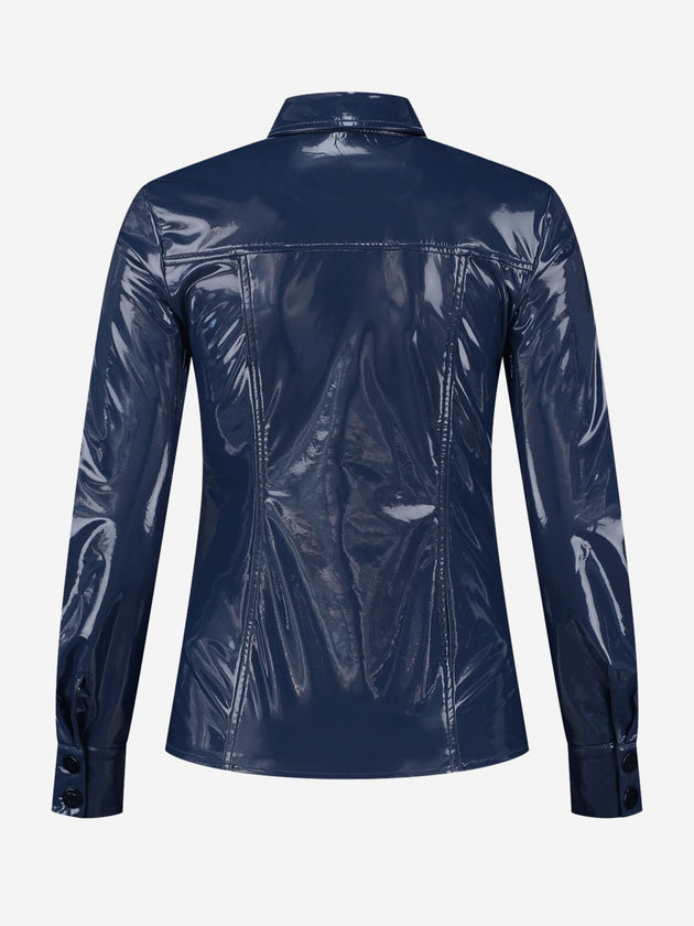Dames blouse leer marineblauw zwart xs s m l xl