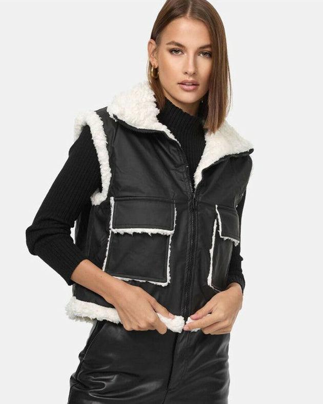 Dames bodywarmer imitatiebont zwart xs sm l