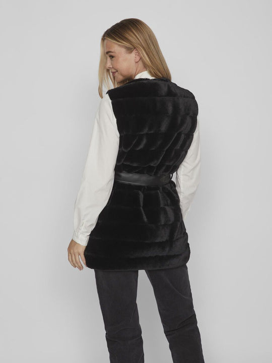 Women's body warmer woolly black xs sm l Gilet imitatiebont - Afneembare imitatieleren strikceintuur - Knoopsluiting aan de voorkant - Gevoerd - Regular fit - Petite model - Lengte: 80 cm in maat 38Reguliere prijs €119,00Reguliere prijs €119,00 -
