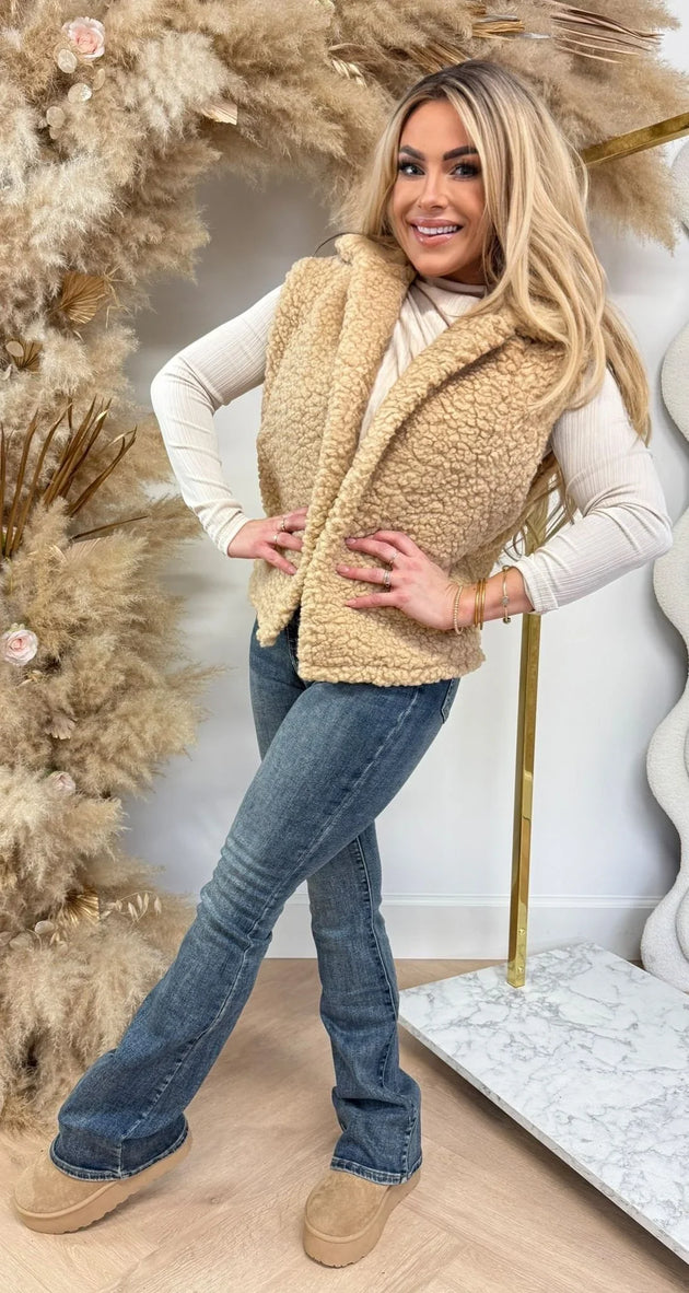 UNICORN Gillet teddy soft with wide collar beige s m l xl xxl