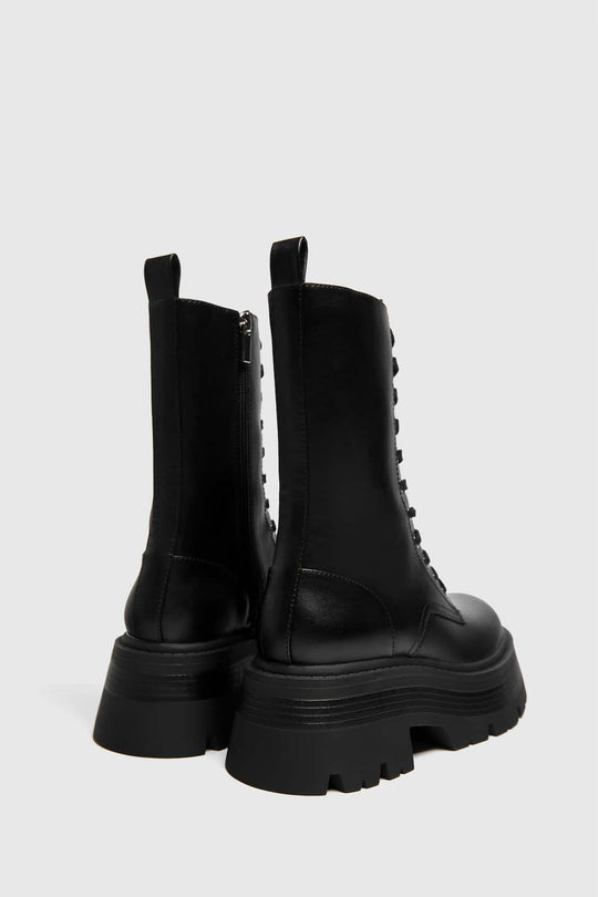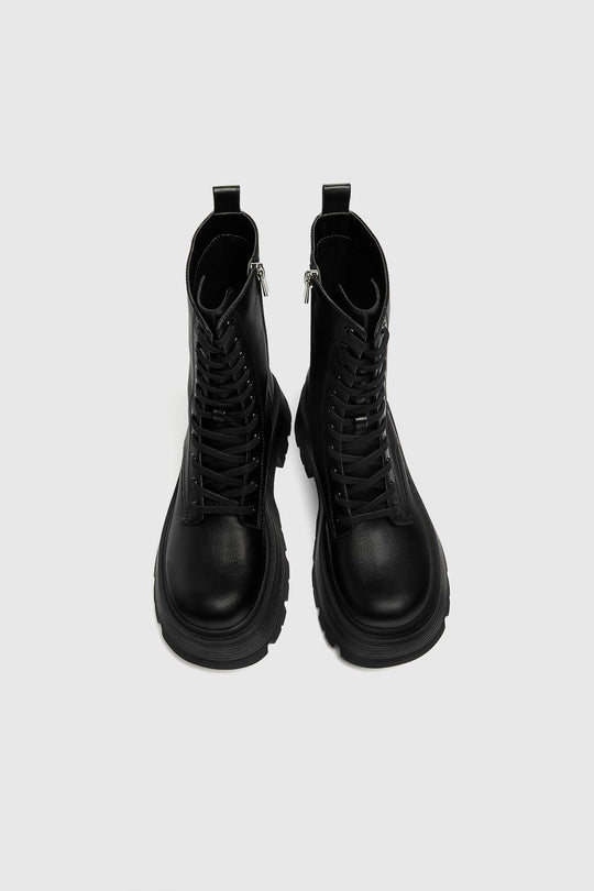 Black lace-up ankle boot with a thick track sole and an internal zipper. Flexible technical polyurethane composite foam insole, designed for enhanced comfort. Platform sole height: 6.5 cm.Reguliere prijs €100,00Reguliere prijs €100,00