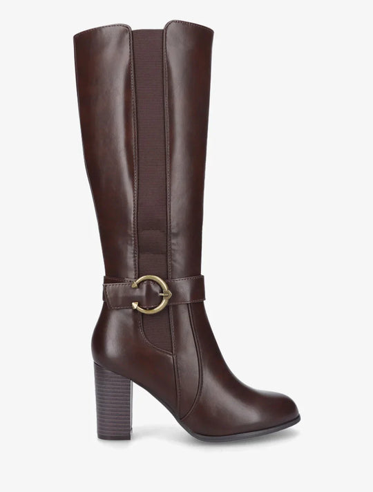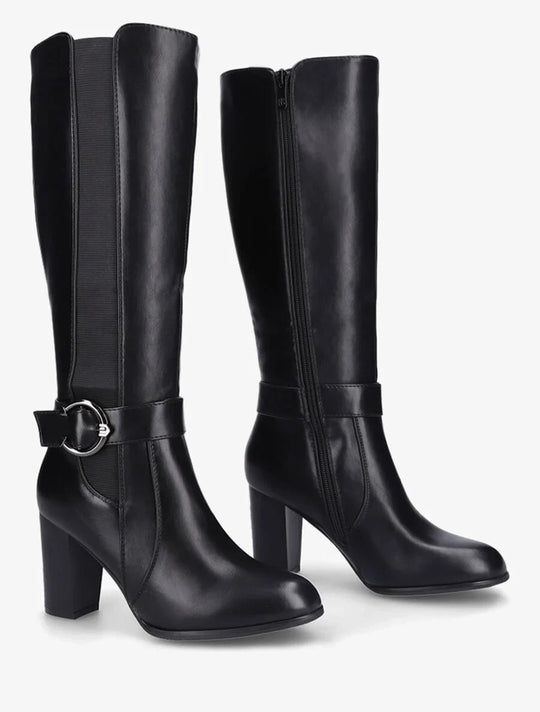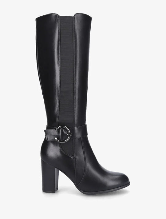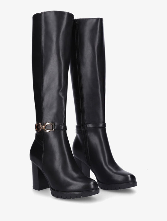 Product details Faux leather boots with heelShaft height: 35 cmHeel height: 8 cmElastic calf circumference: 32 cmBoot heelInside leg zipperAnkle decorated with a stylish buckleRound toesReguliere prijs €100,00Reguliere prijs €100,00 -