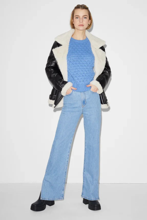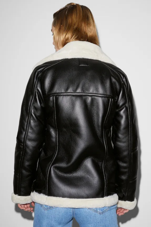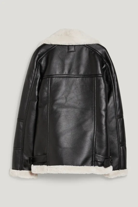 Jack van zacht imitatieleer, met twee ritszakken aan de zijkant. Zoom met verstelbare riempjes aan de zijkant en voering van behaaglijk geweven bont.