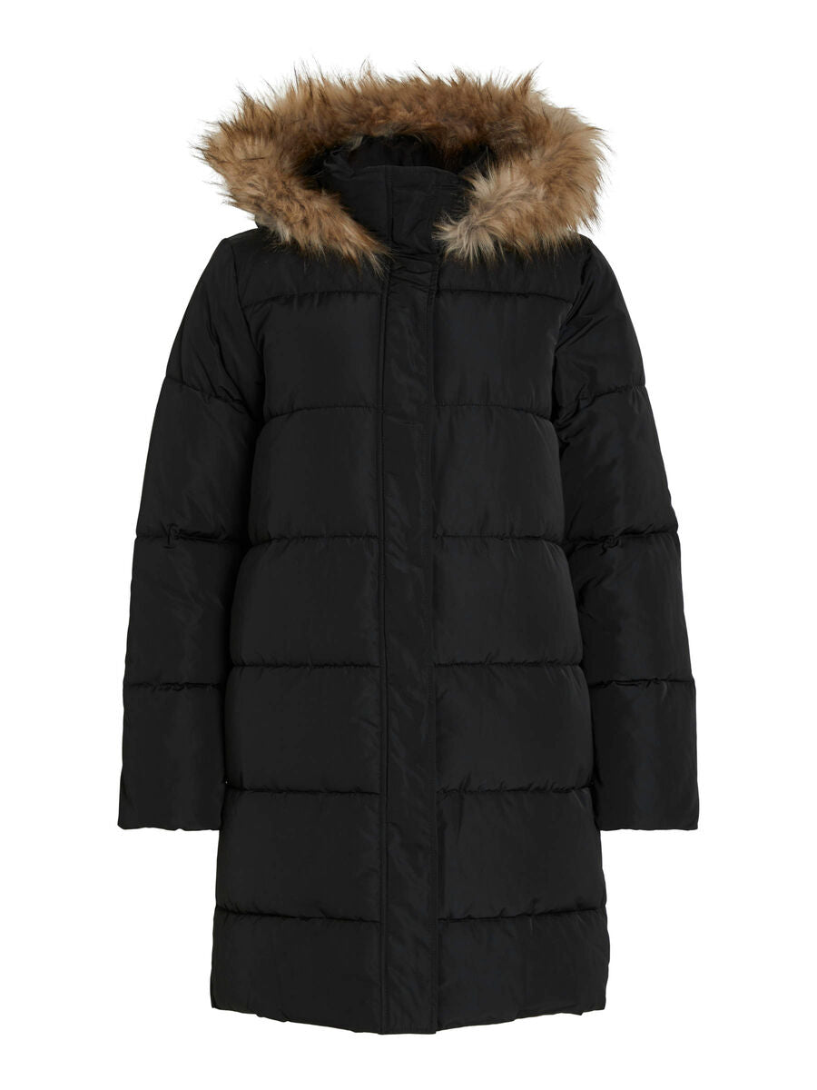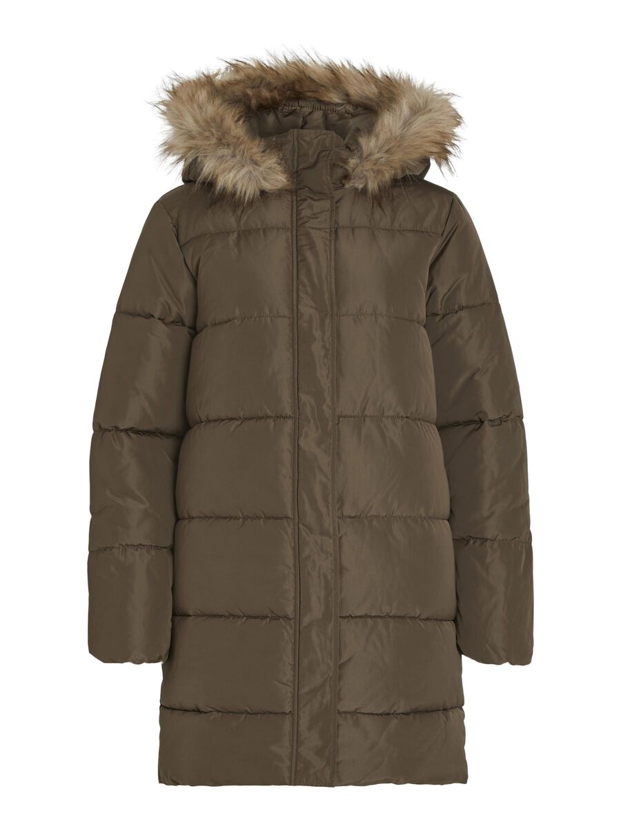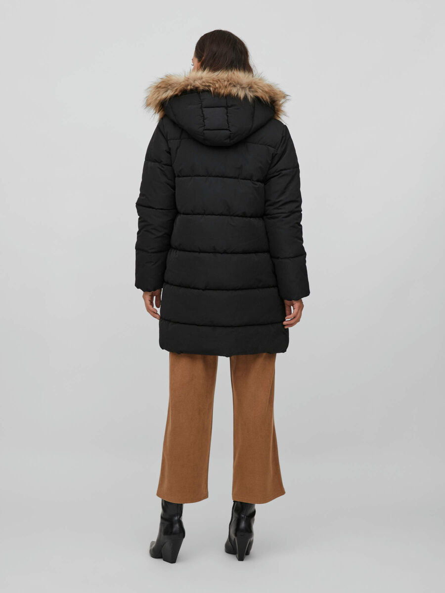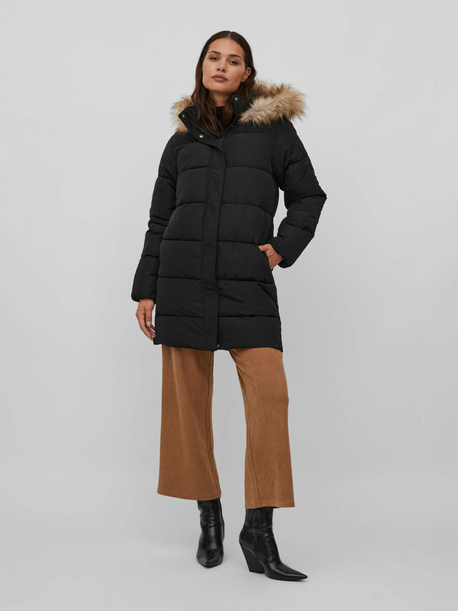 - Gewatteerde parka met capuchon - Capuchonrand van imitatiebont - Gecombineerde rits- en knoopsluiting - Open zijzakken - Lengte: 90 cm in maat 38 - Mouwlengte: 63 cm in maat 38 - Ons model is 178 cm lang en draagt maat 38