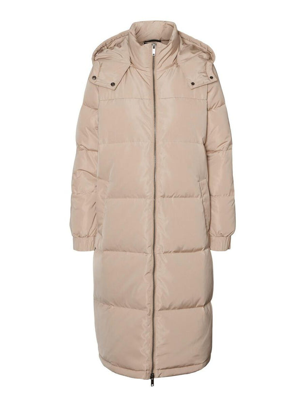 Dames jas lang gewatteerde beige XS S M L XL