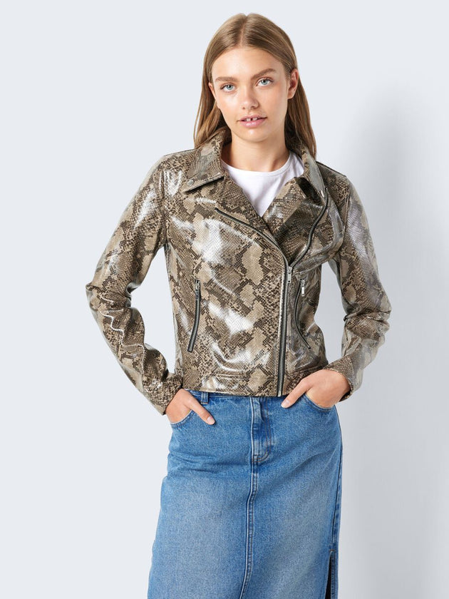 Dames jas slangeprint bruin beige xs s m l xl