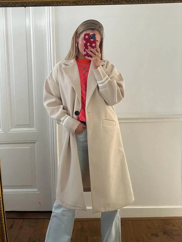 Dames lange jas lichtbeige zwart donkergrijs xs s m l xl