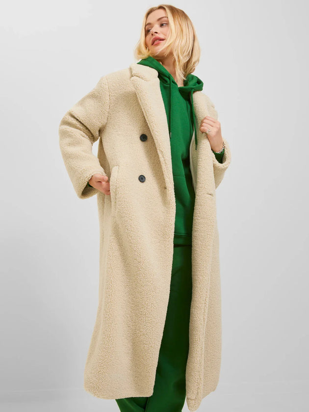 Dames jas wollig beige xs s m l xl