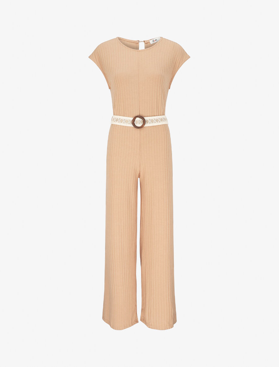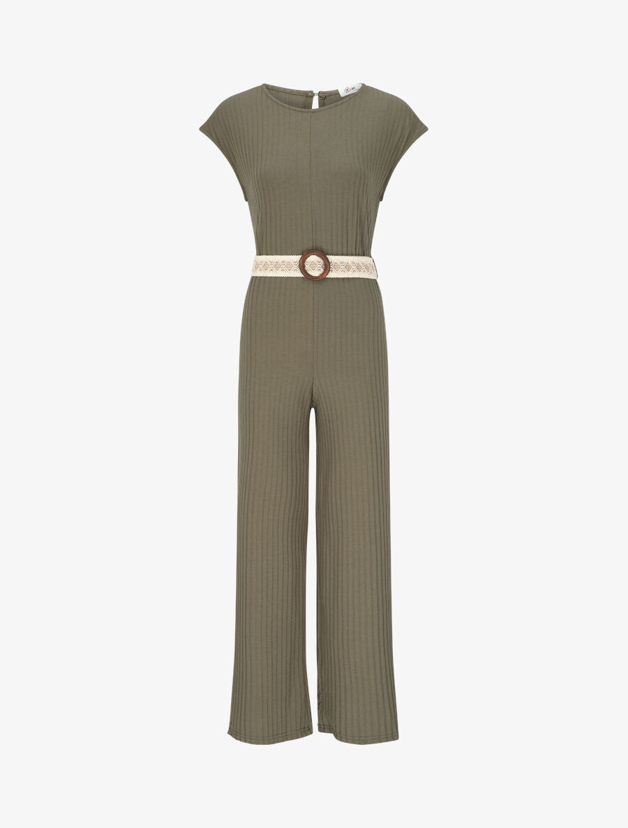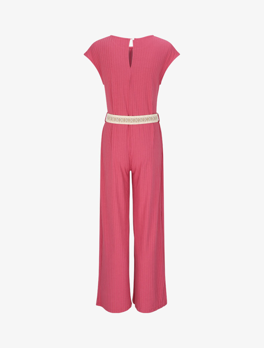 - Effen en geribbelde jumpsuit met rechte snit