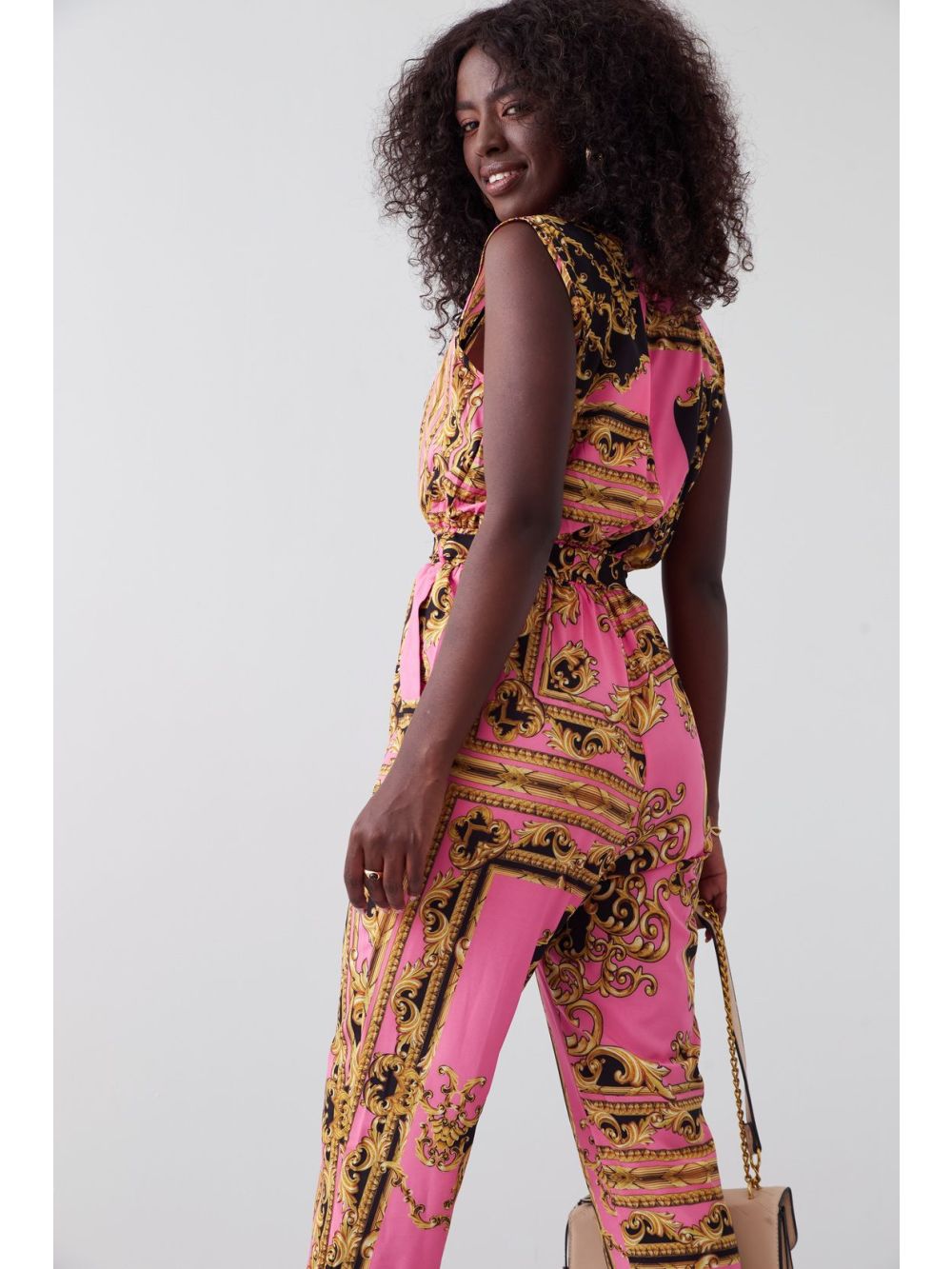 Women's jumpsuit brown pink beige s m l xl