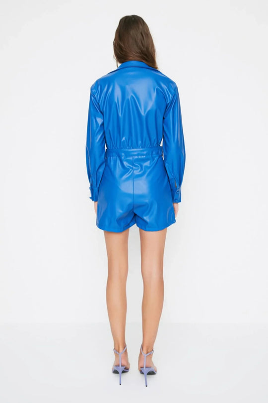 Dames jumpsuit leer roze blauw xs s m l xl