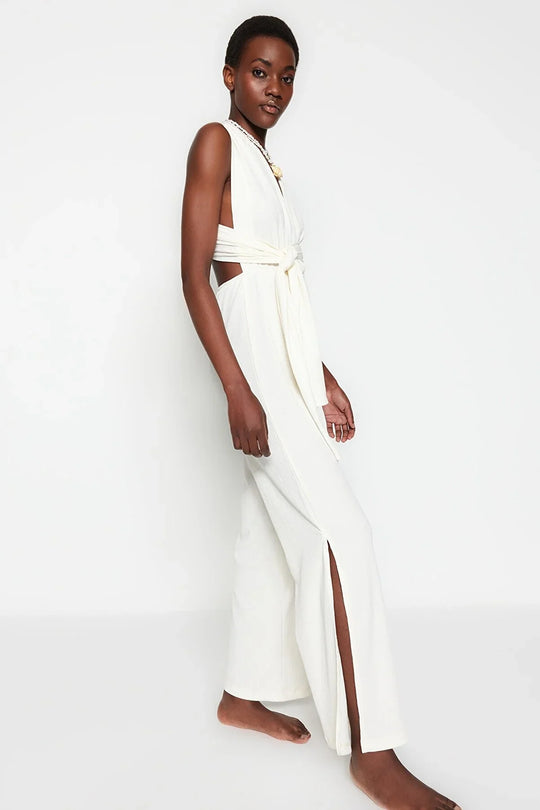 Women's jumpsuit white dark gold xs s m l xl Length: Long Pattern: Plain Fit: Relaxed fit Fabric type: Woven Color: Ecru Leg opening: Wide leg Sleeve length: Spaghetti Strap Sleeve type: Standard sleeve Collar: V Neck Occasion: BeachwearReguliere prijs €80,00Reguliere prijs €80,00 -