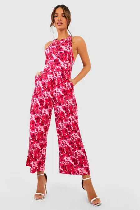 Dames jumpsuit bloemenprint roze xl