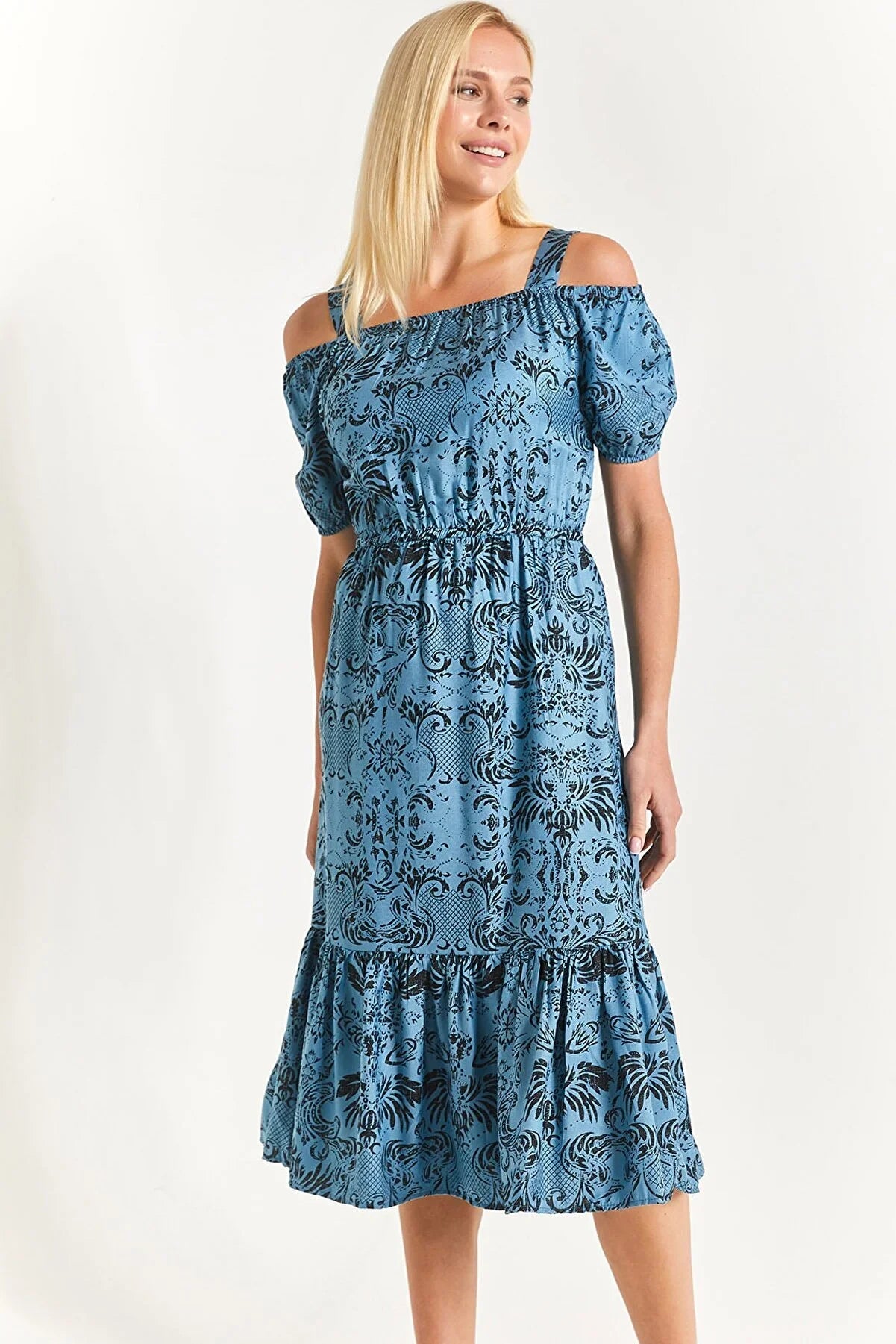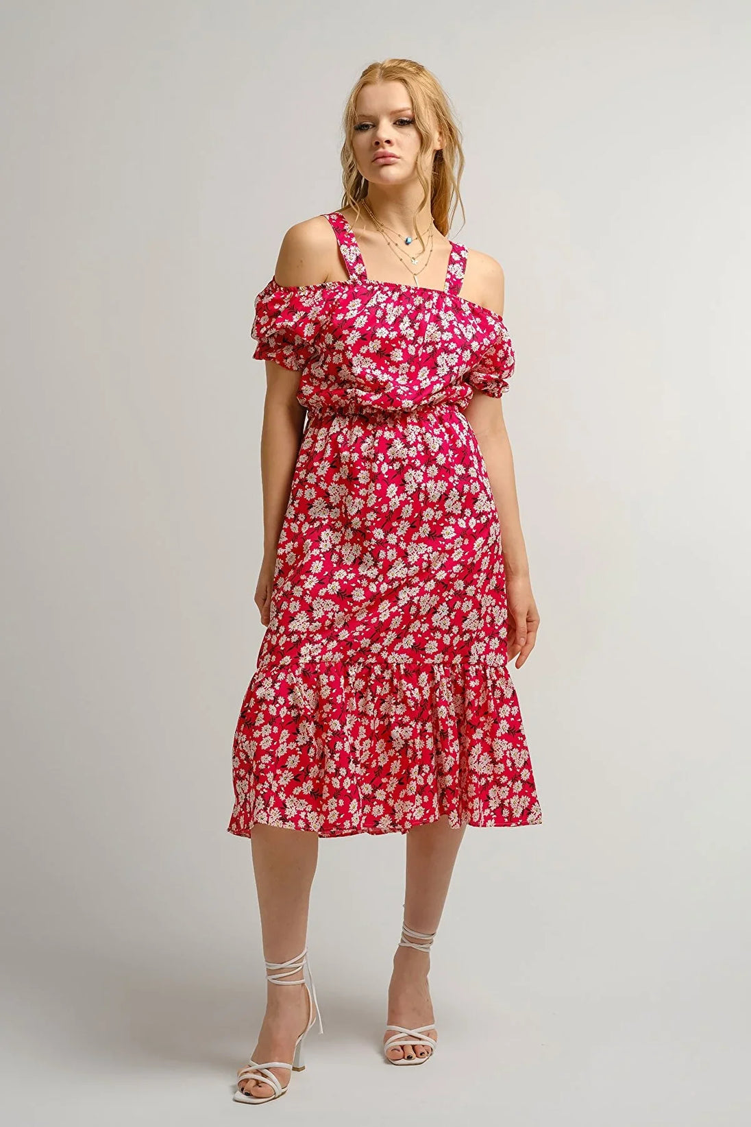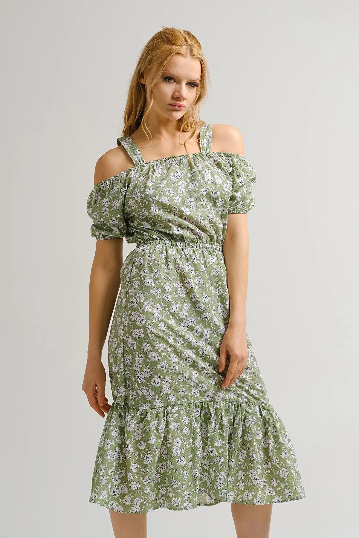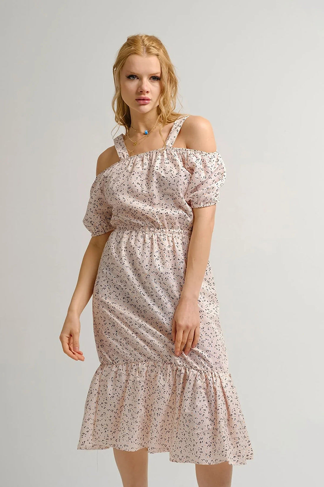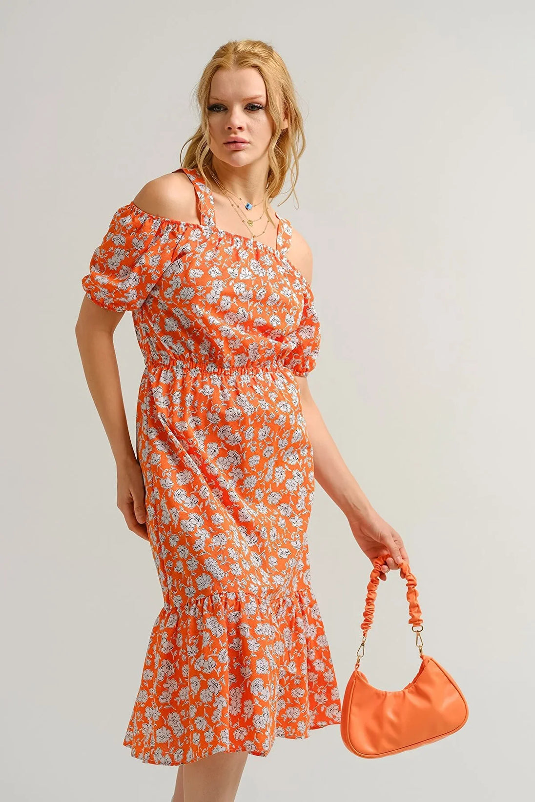 Women's dress floral pattern pink orange gray green light gray blue brown white s m l