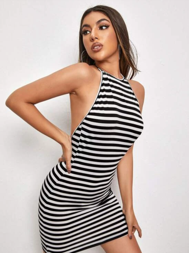 Ladies dress white black striped xs s m l xl