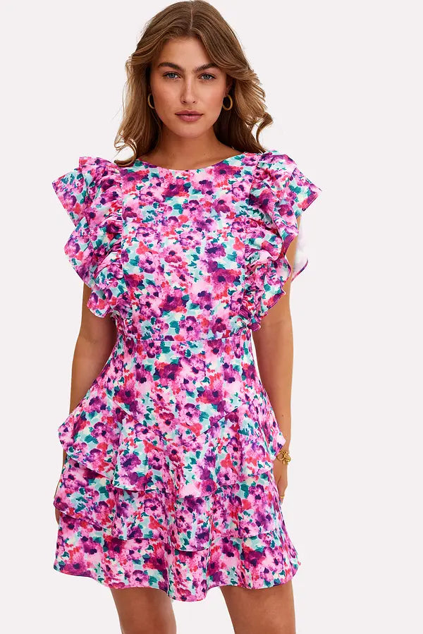 Dames jurk roze fuchsia bloemetjes xs s m l xl