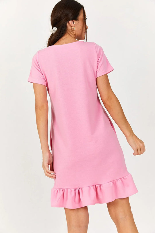 Women's dress black light purple red pink light blue green yellow beige white s m l xl Length: Mini Style: Ruffle hem Pattern: Plain Fit: Regular fit Fabric type: Woven Color: Purple Black Red Pink Light Blue Green Yellow Beige White Collar: Crew neck...Reguliere prijs €33,00Reguliere prijs €33,00 -