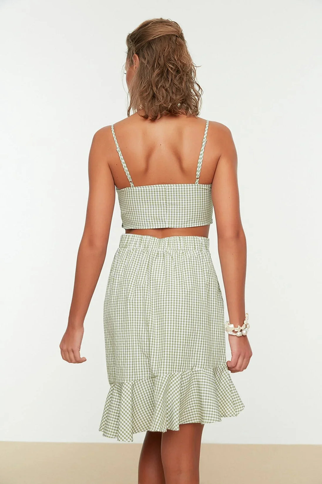 Dames kledingset turkoois donkerblauw oranje donkergroen lichtpaars s m l