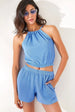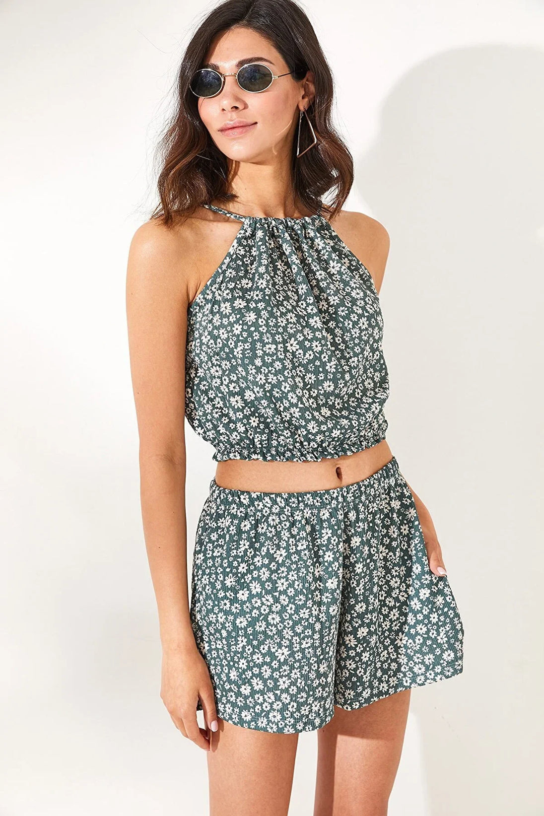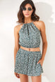 Dames kledingset turkoois donkerblauw oranje donkergroen lichtpaars s m l