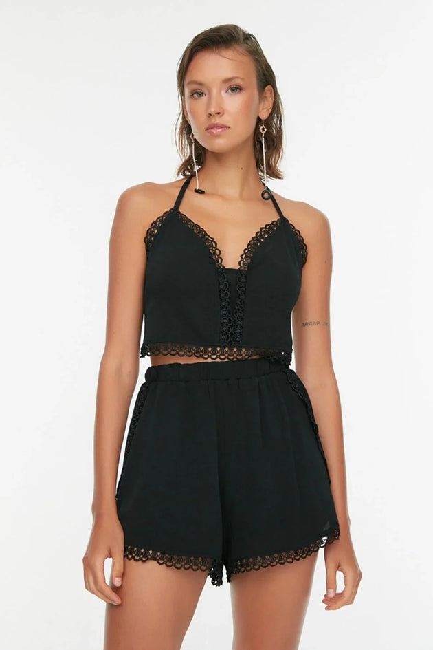 Dames kledingset zwart roze groen beige s m
