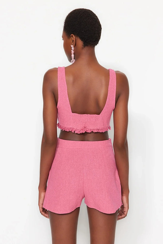 Dames kledingset vierkant patronen roze s m