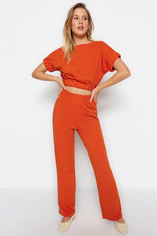 Women's clothing set orange xs s m l xl Lengte : lang Patroon : Effen Pasvorm : oversized Soort stof : Gebreid Kleur : Bruin Beenopening : Rechte pijp Mouwlengte : Korte mouw Mouwtype : Standaard mouw Kraag : Boothals Extra functies : Geen extra functies beschikbaar Gelegenheid : loungekleding Inhoud verpakking : 2 stuks Materiaal : Katoen Stofsoort : Jersey Technisch : Geen Bottom-Top Set : T-shirt-broek...Reguliere prijs €45,00Reguliere prijs €45,00 -