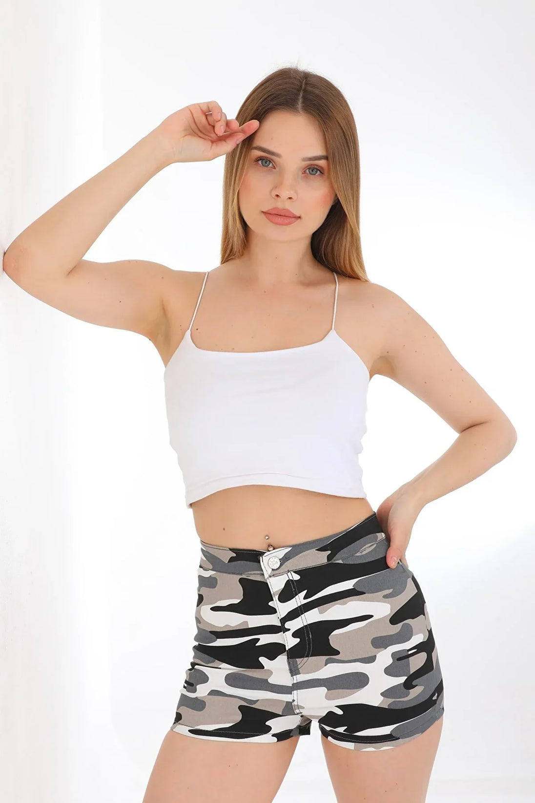 Dames korte broek groen geel taupe s m l xl