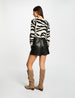 Het model is 175 cm groot en draagt maat S/36