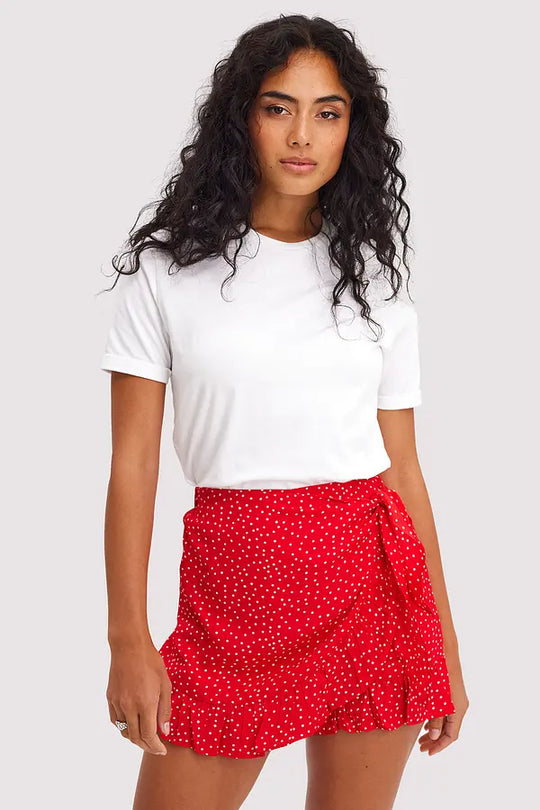 Women's shorts skirt red xs s m l xl Deze skort heeft een strikdetail, een onzichtbare rits, elastiek op de achterkant en voering. Model informatie: Wendell is 170 cm en draagt maat XS. Kleur Rood Lengte...Reguliere prijs €68,00Reguliere prijs €68,00 -