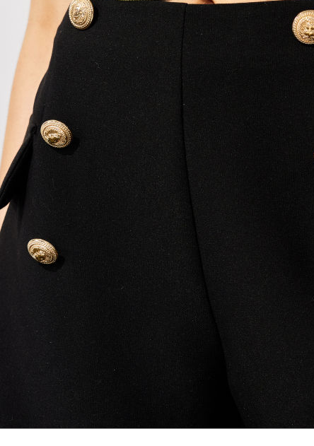 Córdoba merk dames korte broek broekrok zwart met hoge taille en goudkleurige sierknopen xs s m l xl